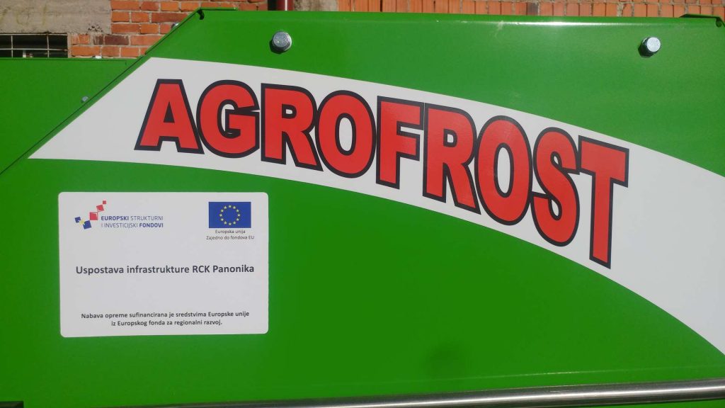 U sklopu projekta Uspostava infrastrukture Regionalnog centra kompetentnosti Panonika (KK.09.1.3.01.0027) nabavljena je oprema za zaštitu od mraza – Frostbuster. Riječ je o fleksibilnom mobilnom stroju za zaštitu od mraza koji radi na principu upuhivanja zagrijanog zraka u nasad. Time dolazi do porasta temperature, a smanjenja relativne vlažnosti zraka, što dovodi do smanjenja jačine mraza te rezultira minimalnom ili nikakvom štetom na usjevima.